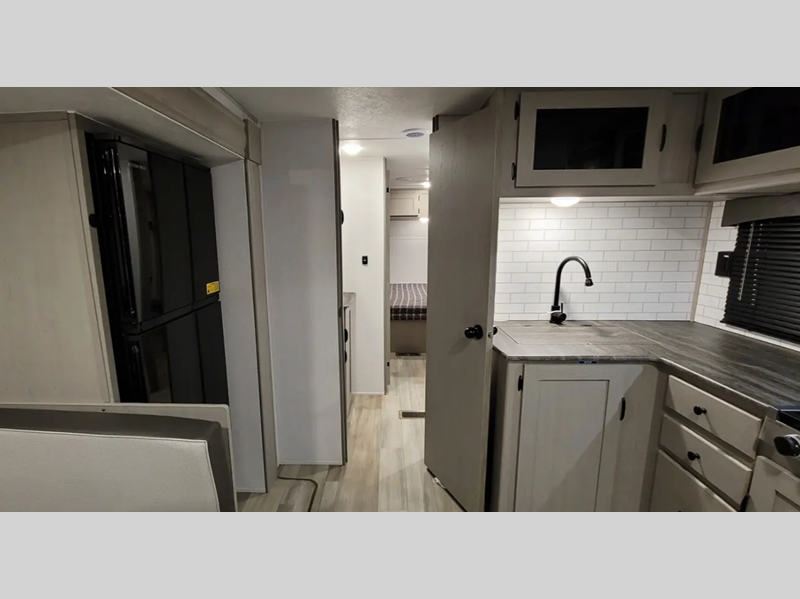 Sleeps 5 Slides 2 Length 26 ft Ext Width 8 ft Ext Height 11 ft Hitch Weight 675 lbs GVWR 7675 lbs Dry Weight 5447 lbs Cargo Capacity 2228 lbs Fresh Water Capacity 40 gals Grey Water Capacity 64 gals Black Water Capacity 32 gals Furnace BTU 30000 btu Available Beds Murphy Refrigerator Type 12 Volt Refrigerator Size 8 cu ft Cooktop Burners 3 Shower Size 24" x 36" Number of Awnings 1 Water Heater Type Tankless On Demand AC BTU 13500 btu Awning Info Power with LED Light Strip & Adj. Legs Axle Count 2 Shower Type Standard Similar Floorplans