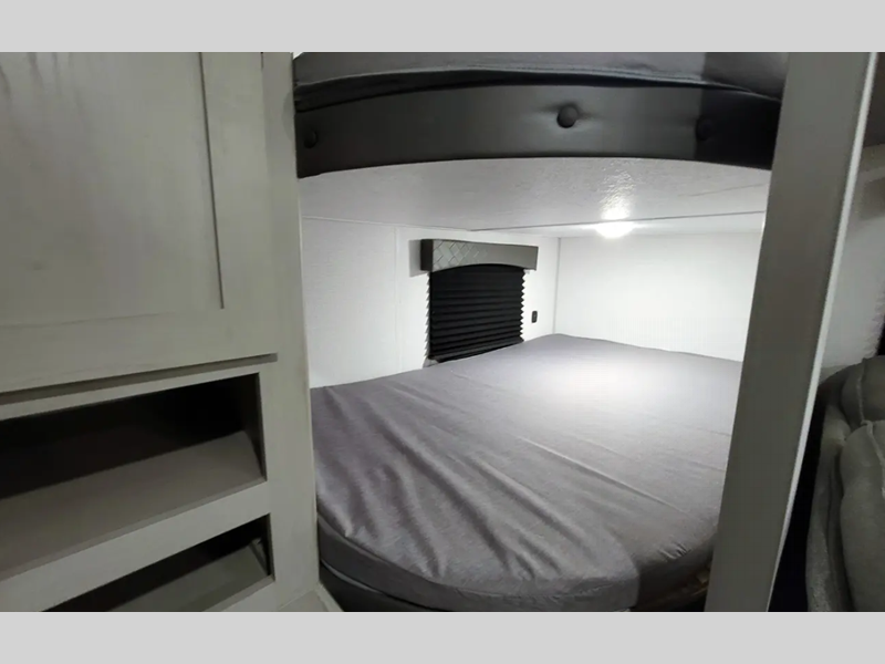 Sleeps 8 Slides 1 Length 31 ft 11 in Ext Width 8 ft Ext Height 11 ft Hitch Weight 725 lbs GVWR 7725 lbs Dry Weight 6093 lbs Cargo Capacity 1632 lbs Fresh Water Capacity 40 gals Grey Water Capacity 64 gals Black Water Capacity 32 gals Furnace BTU 30000 btu Number Of Bunks 2 Available Beds RV Queen Refrigerator Type 12 Volt Refrigerator Size 8 cu ft Cooktop Burners 3 Shower Size 24" x 36" Number of Awnings 1 Water Heater Type Tankless On Demand AC BTU 13500 btu Awning Info 15' Power with LED Light Strip & Adj. Legs Axle Count 2 Washer/Dryer Available Yes Shower Type Standard Similar Floorplans