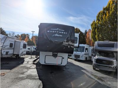 The EAST TO WEST Ahara luxury fifth wheel focuses on high quality and value. With beautiful décor and all of the necessities, you'll be asking for the Ahara before you even get a chance to look at anything else!