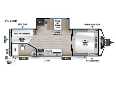 Sleeps 7 Slides 1 Length 29 ft 5 in Ext Width 8 ft Ext Height 11 ft 2 in Hitch Weight 845 lbs Dry Weight 6378 lbs Cargo Capacity 3267 lbs Fresh Water Capacity 53 gals Grey Water Capacity 60 gals Black Water Capacity 30 gals Furnace BTU 35000 btu Number Of Bunks 2 Available Beds King Bed Refrigerator Type 12V Black Glass Refrigerator Size 10.7 cu ft Cooktop Burners 3 Number of Awnings 1 Water Heater Type On Demand Tankless AC BTU 15000 btu Awning Info 21' Power with LED Lights & Auto Dump Axle Count 2 Shower Type Standard Similar Travel Trailer Floorplans