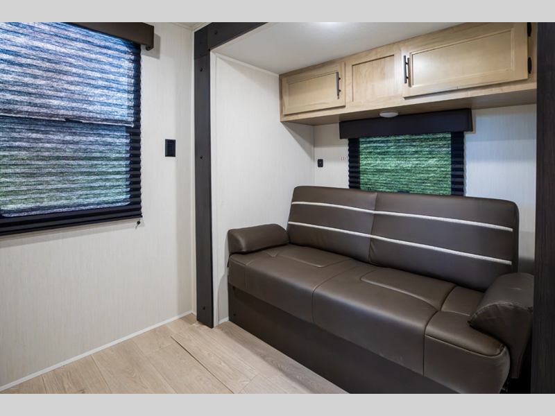 You will always find a comfortable place to relax with friends and family, cook with the full kitchen amenities, and clean up daily in the bathroom. There are also cozy sleeping spaces, plenty of storage options, and durable construction materials so you can enjoy your trailer for years to come!