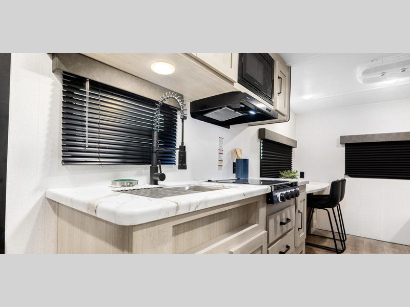 Sleeps 4 Slides 1 Length 22 ft Ext Width 7 ft 6 in Ext Height 10 ft 5 in Hitch Weight 440 lbs GVWR 5130 lbs Dry Weight 3629 lbs Cargo Capacity 1501 lbs Fresh Water Capacity 34 gals Grey Water Capacity 30 gals Black Water Capacity 30 gals Available Beds RV Queen Refrigerator Type 12V Black Glass Cooktop Burners 2 Shower Size 36" x 30" Number of Awnings 1 LP Tank Capacity 20 lbs Water Heater Capacity 6 gal Water Heater Type Gas/Electric AC BTU 13500 btu Awning Info 14' Axle Count 1 Shower Type Standard Similar Floorplans