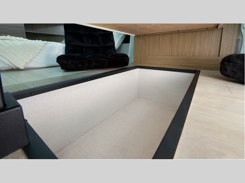 You will love the residential features, such as a Serta mattress in the bedroom, stainless steel kitchen appliances, and solid surface countertops. There are also adjustable textured roller shades, a 60k on-demand tankless water heater, and a 106" interior height in the living room for added space. Outside, 4K awning "Blade Lighting" will keep your space well illuminated, while JBL speakers let you listen to your favorite tunes.