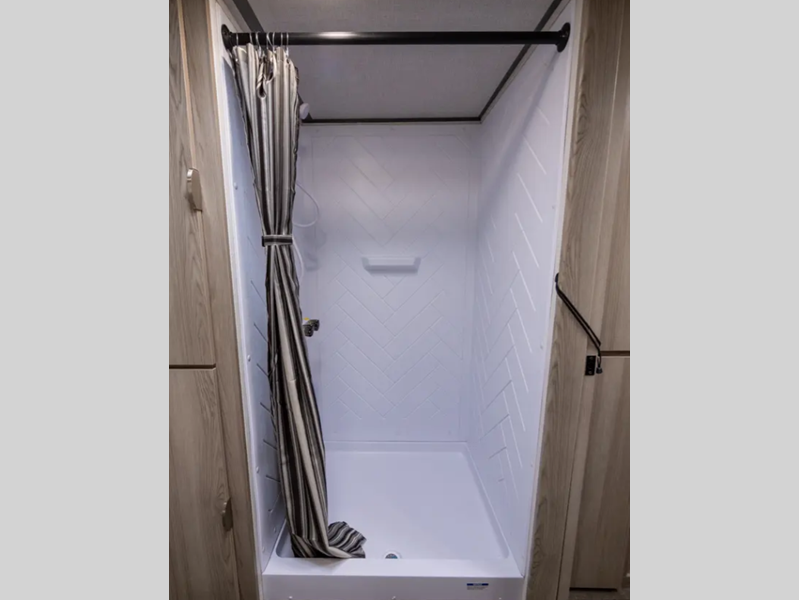 Sleeps 4 Slides 1 Length 24 ft 9 in Ext Width 7 ft 6 in Int Height 6 ft 6 in Hitch Weight 516 lbs Dry Weight 4325 lbs Cargo Capacity 3191 lbs Fresh Water Capacity 39 gals Grey Water Capacity 27 gals Black Water Capacity 32 gals Available Beds Queen Refrigerator Type Dual Swinging 12V Cooktop Burners 2 Number of Awnings 1 Water Heater Type On Demand Tankless AC BTU 13500 btu Awning Info Power with Adjustable Legs Axle Count 2 Shower Type Standard Electrical Service 30 amp Similar Floorplans