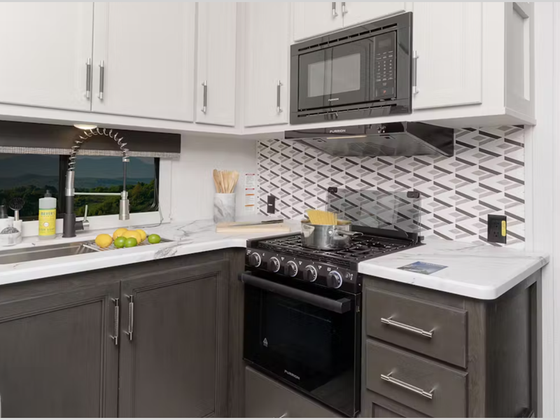 The Road Defense™ Powder Coated Chassis offers superior protection against corrosion and the HyperDeck flooring is stronger, lighter and more resilient than laminate floors. You will feel right at home with residential features such as, designer vinyl flooring throughout, a farmhouse style sink, an upgraded memory foam mattress, and much more!