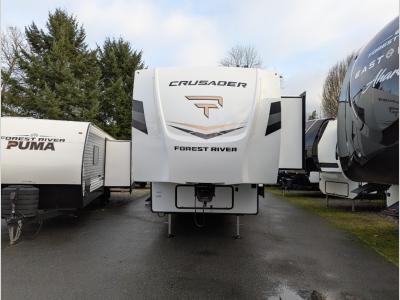 With any Crusader fifth wheel by Prime Time, you will enjoy outstanding quality and premium features! The Dexter E-Z Flex rubberized suspension equalizer will help make towing smoother than ever, and the high gloss gel coated exterior fiberglass is sure to be eye-catching. There are also thick insulated pass-through storage baggage doors outside, along with a 102" wide body, and hassle-free one-touch auto leveling. Inside, you'll find real wood cabinet doors, carpet-less slide rooms, blackout roller shades, and stain resistant, easy clean furniture. The Crusader fifth wheels are built with Eternabond construction, a one-piece PVC roof membrane, radiant foil insulation, plus rack and pinion slide systems.