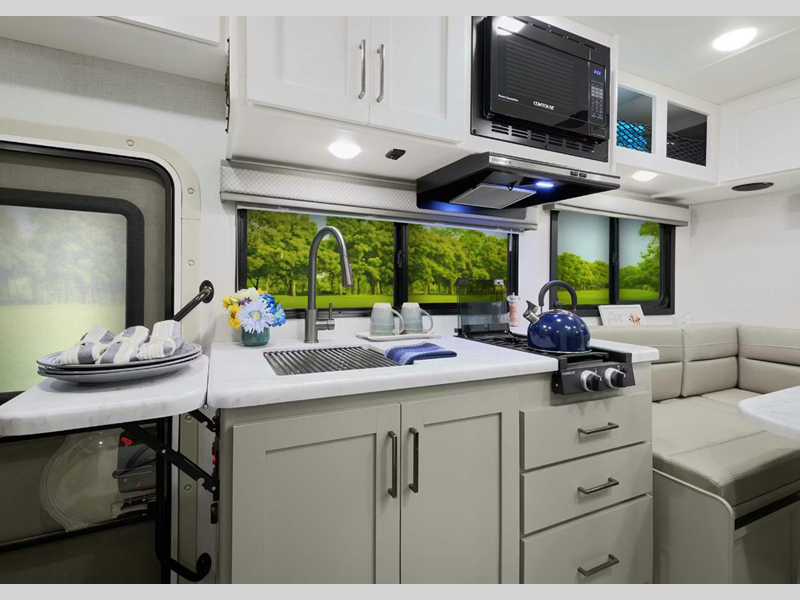 Sit behind the wheel of the Thor Motor Coach Chateau Class C gas motorhome and see all that the world has to offer! Imagine coming in from a long tour of your destination to enjoy a meal and share your favorite views.