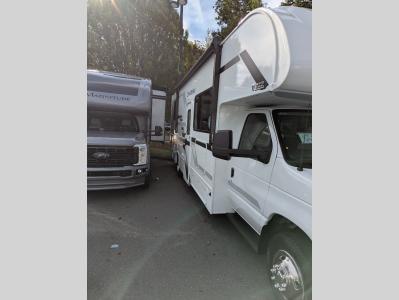 Sleeps 6 Slides 1 Length 30 ft Ext Width 8 ft 3 in Ext Height 11 ft Int Height 7 ft Interior Color Silk Haze, Snow Leopard Exterior Color Standard Graphics Hitch Weight 8000 lbs GVWR 14500 lbs Fresh Water Capacity 40 gals Grey Water Capacity 40 gals Black Water Capacity 27 gals Furnace BTU 30000 btu Generator 4.0 kW Gas Dual Gas/LP Fuel Type Gasoline Engine 7.3L V8 Chassis Ford E-Series Horsepower 325 hp Fuel Capacity 55 gals Wheelbase 212 in Number Of Bunks 1 Available Beds RV Queen Torque 450 ft-lb Refrigerator Type 12V with Auto Generator Start Cooktop Burners 3 Shower Size 24" x 36" Number of Awnings 1 LP Tank Capacity 40.9 lbs Water Heater Type Tankless AC BTU 15000 btu Basement Storage 104.2 cu. ft. TV Info LR 40" Smart TV Awning Info 14' Power w/Integrated LED Lighting Gross Combined Weight 22000 lbs Shower Type Standard Electrical Service 30 amp Similar Motor Home Class C Floorplans