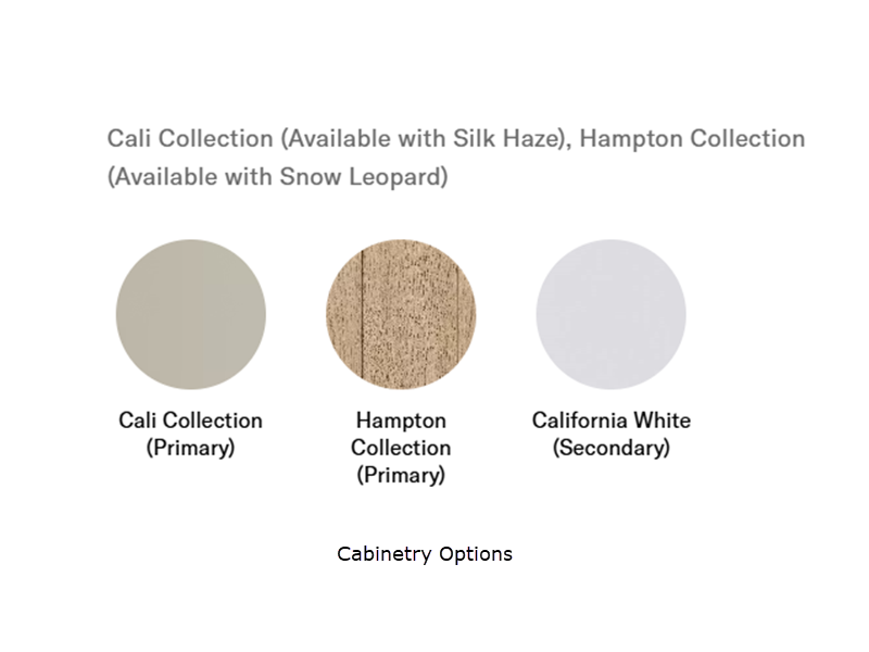 - Cali Collection. Coastline Grey Flat Panel Cabinet Doors. Black Nickel Kitchen Faucet, and Door Pulls. Bath Hardware is all Brushed Nickel Including All Faucets (Optional)
