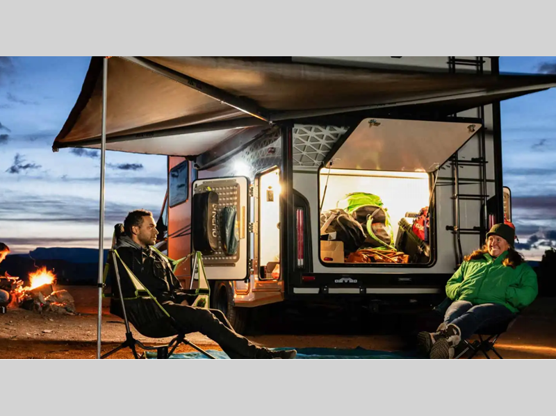 - Heated gear garage w/L-track cargo tie down system, 110V/12V charging ports and LED lighting