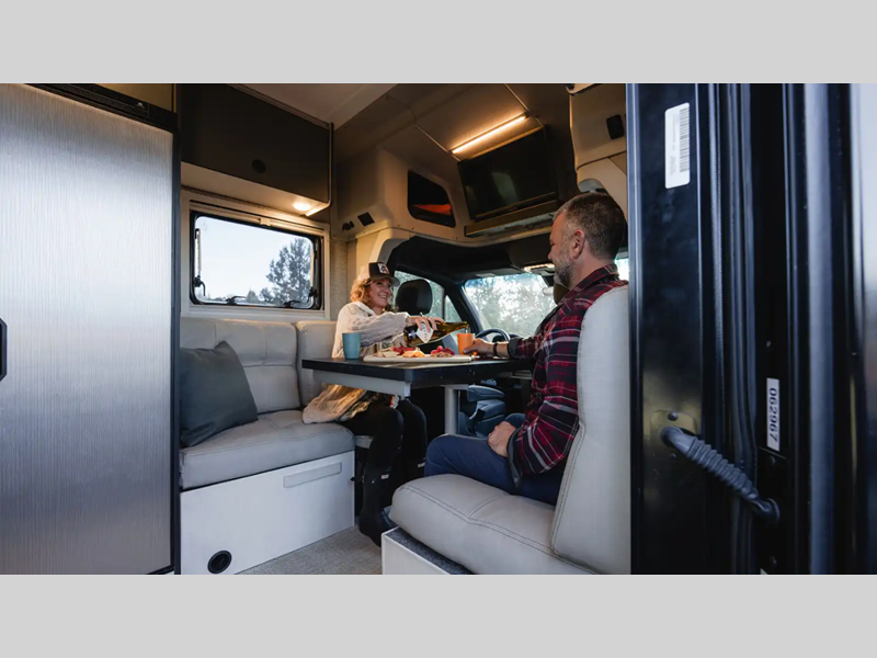 The Mercedes-Benz AWD Sprinter chassis with elevated ground clearance and all-terrain tires easily navigate low-traction environments, and the 2.0L high output turbo diesel 4 cylinder engine will power you to your favorite destinations. With a new multifunctional lounge, you can configure it into four different modes to meet your exact needs at different times. You also have a flexible galley to prepare your best home cooked meals while on the road!