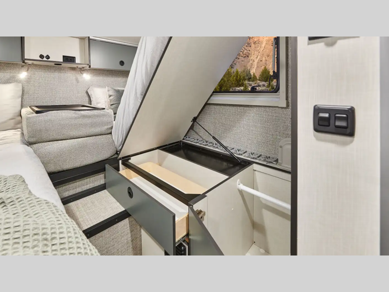 Sleeps 3 Length 24 ft 6 in Ext Width 7 ft 3 in Ext Height 10 ft 11 in Int Height 6 ft 8 in Interior Color Veredis, Juniper Exterior Color Raw Sienna ll, Verdant ll; with or without Graphics Hitch Weight 5000 lbs GVWR 11030 lbs Fresh Water Capacity 50 gals Grey Water Capacity 51 gals Generator 2,500-watt LP Fuel Type Diesel Engine 2.0L Turbo Diesel 4 Cylinder Chassis Mercedes-Benz Sprinter AWD Fuel Capacity 24.5 gals Wheelbase 170 in Available Beds Two Twin Refrigerator Type Single Door 12V Refrigerator Size 5.3 cu ft Convection Cooking Yes Cooktop Burners 1 Shower Size 24" x 30" Number of Awnings 1 Axle Weight Front 4410 lbs Axle Weight Rear 7720 lbs LP Tank Capacity 40 lbs Water Heater Type Truma AquaGo Comfort Plus AC BTU 13500 btu Basement Storage 64 cu. ft. Awning Info 13' Power w/ LED Light and Bluetooth Gross Combined Weight 15250 lbs Shower Type Wet/Bath Shower Electrical Service 30 amp Similar Floorplans