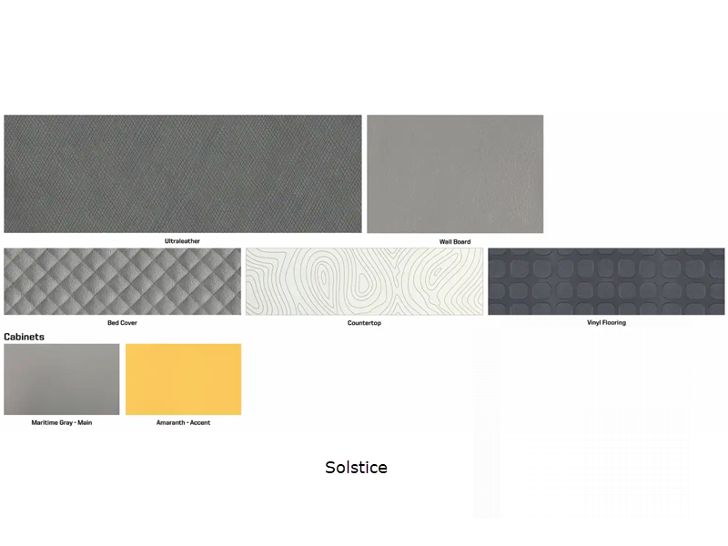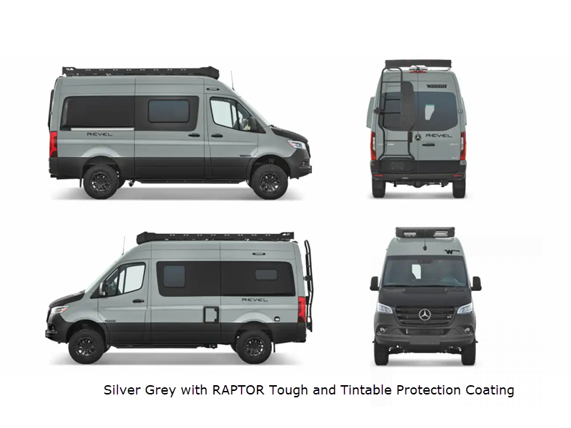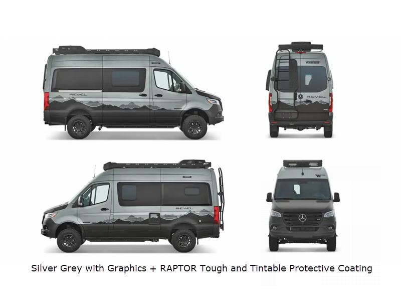 Sleeps 2 Length 19 ft 7 in Ext Width 7 ft 5 in Ext Height 10 ft Int Height 6 ft 3 in Interior Color Overlander, Solstice, Stealth Gray Exterior Color Silver Grey, Stone Grey, Selenite w/RAPTOR/RAPTOR+ Tough & Tintable Protective Coating Hitch Weight 5000 lbs GVWR 9050 lbs Fresh Water Capacity 35 gals Grey Water Capacity 21 gals Fuel Type Diesel Engine 2.0L 4-Cylinder Turbo Chassis Mercedes Benz Sprinter AWD Horsepower 211 hp Fuel Capacity 24.5 gals Wheelbase 144 in Refrigerator Type Compressor Driven Refrigerator/Freezer Refrigerator Size 3.0 cu ft Cooktop Burners 1 Shower Size 31" x 26" Axle Weight Front 4409 lbs Axle Weight Rear 5359 lbs Water Heater Type Continuous Gross Combined Weight 13930 lbs Shower Type Wet/Bath Shower Electrical Service 30 amp